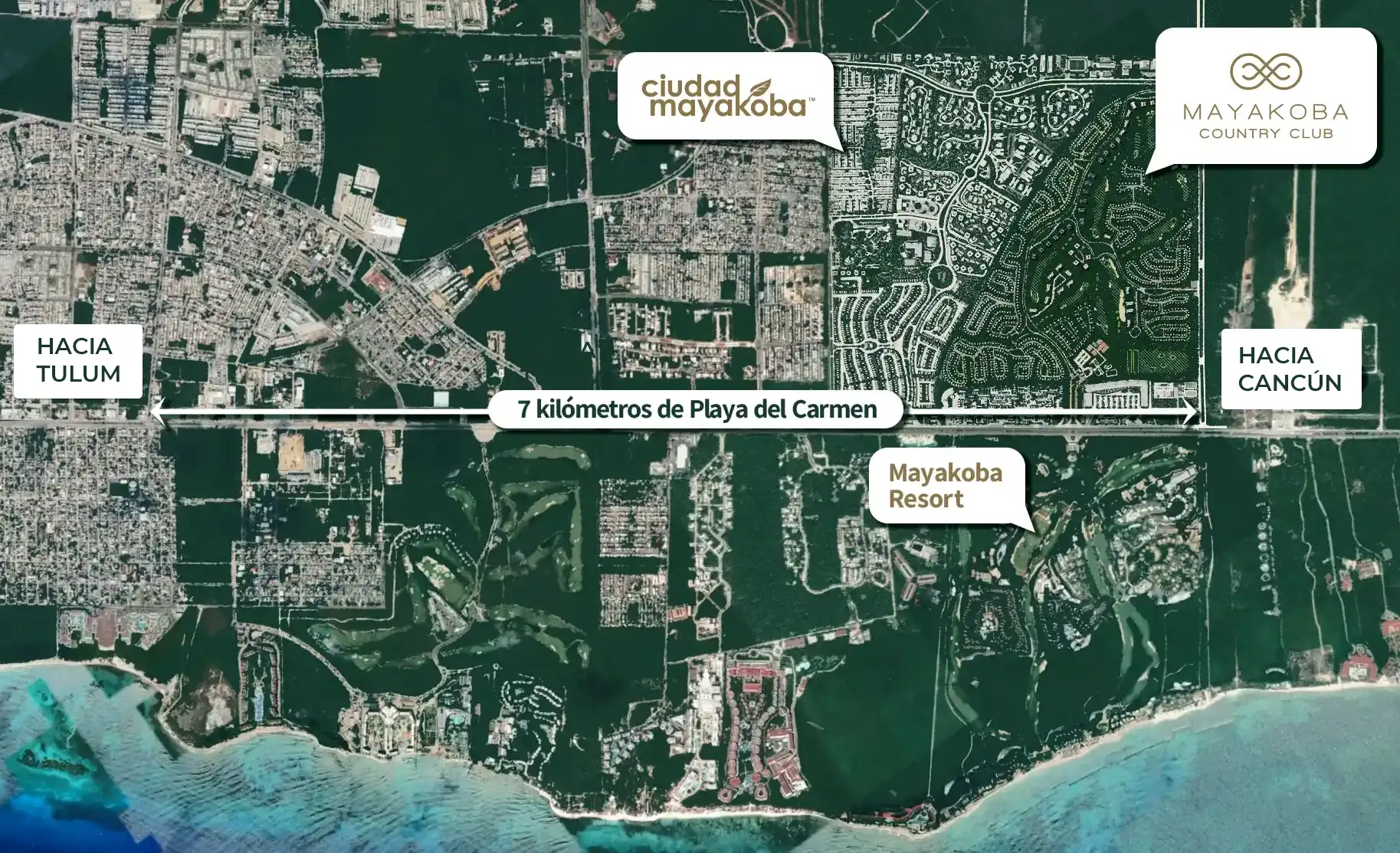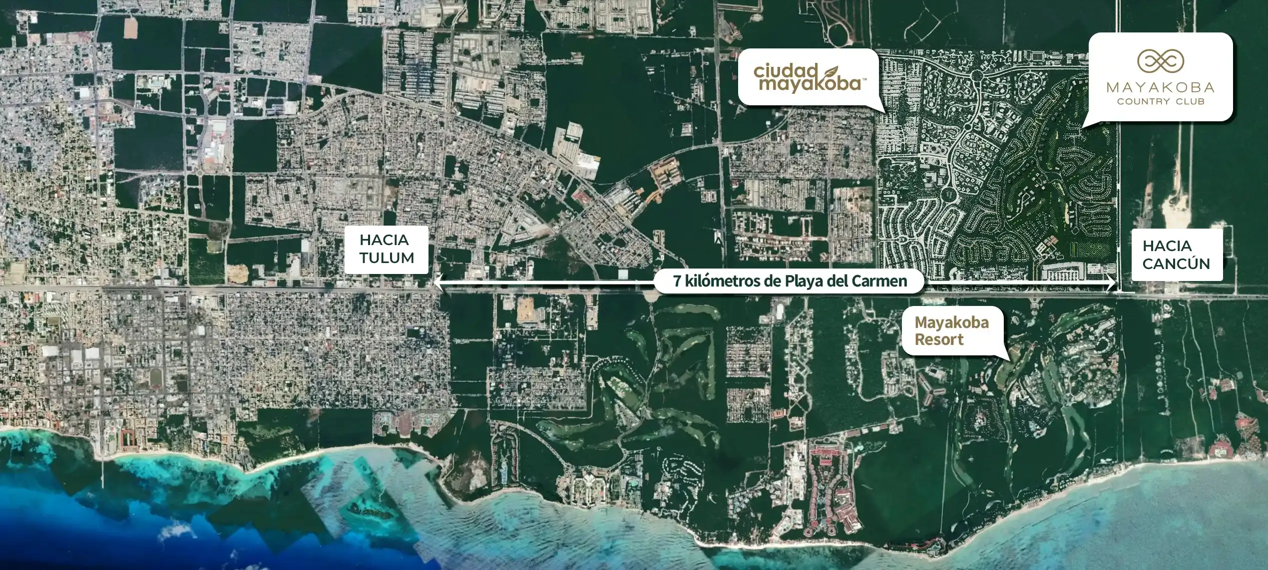 A 7 km del centro de Playa del Carmen y 45 min del Aeropuerto de Cancún.